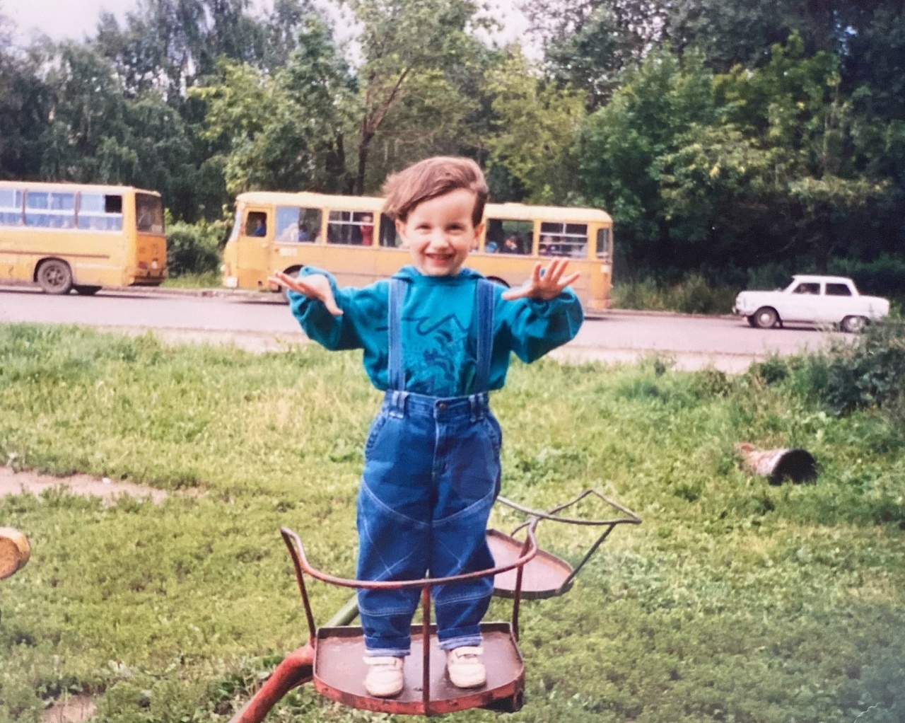 «Фото сделано примерно в 1995-1996 годах. На заднем плане — привокзальный сквер. На мой взгляд, железнодорожный вокзал и автовокзал — это главная визитная карточка города. Гости начинают знакомство с Череповцом именно с этого места. Детство, особенно летние каникулы, я проводил в деревне. Так сложилось, что у меня не было ни бабушки, ни дедушки — помню их только по фото. Каждое лето мы ездили к маминой сестре в Суду, где родилась моя мама. Вокзал для меня связан с суетой дачников, с вереницами поездов и с чем-то по-настоящему летним, теплым и солнечным».