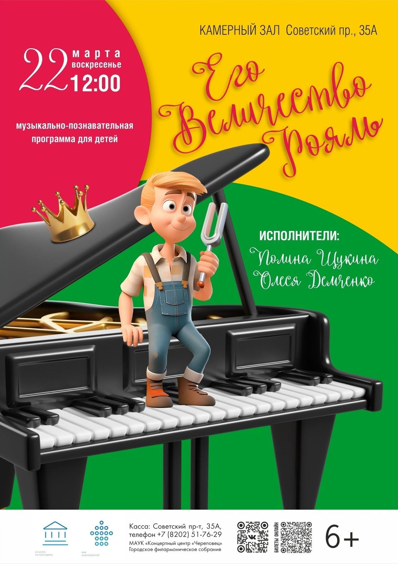 12:00 – Музыкально-познавательная программа «Его Величество Рояль» (6+). Два рояля, два зала, Полина Щукина и Олеся Демченко. Филармония (Советский пр., 35а)