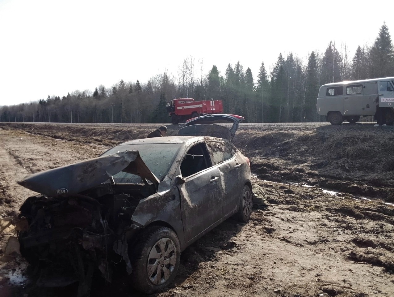 Сегодня на 64-м километре дороги Чекшино – Тотьма произошла авария. Водитель автомобиля «КИА РИО» не справился с управлением и вылетел в кювет.