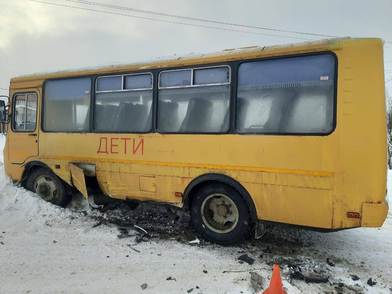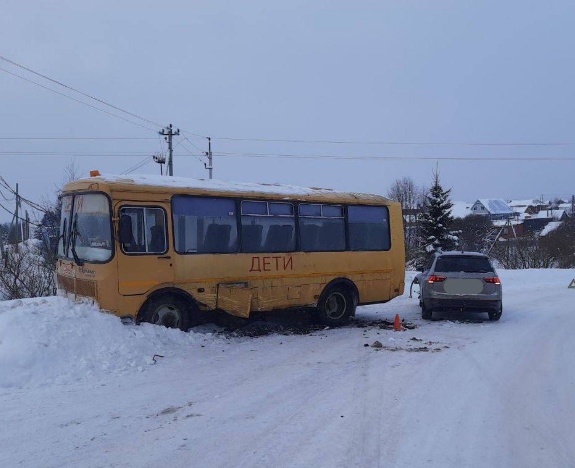 По предварительной информации, водитель «Фольксвагена» не справился с управлением и выехал на встречную полосу, где столкнулся с автобусом. В момент инцидента в салоне находились четверо детей и сопровождающий. Никто не пострадал.
